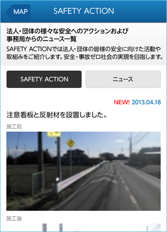 その取組みや交通安全の情報などは、みんなの手による安全への一歩として「SAFETY ACTION」で紹介しています。