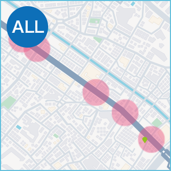 - 「急ブレーキが多発している地点」や「事故の多いエリア」、そして「みんなが危ないと感じて投稿した地点」など危険がひそんでいる場所を、確認することができます。
